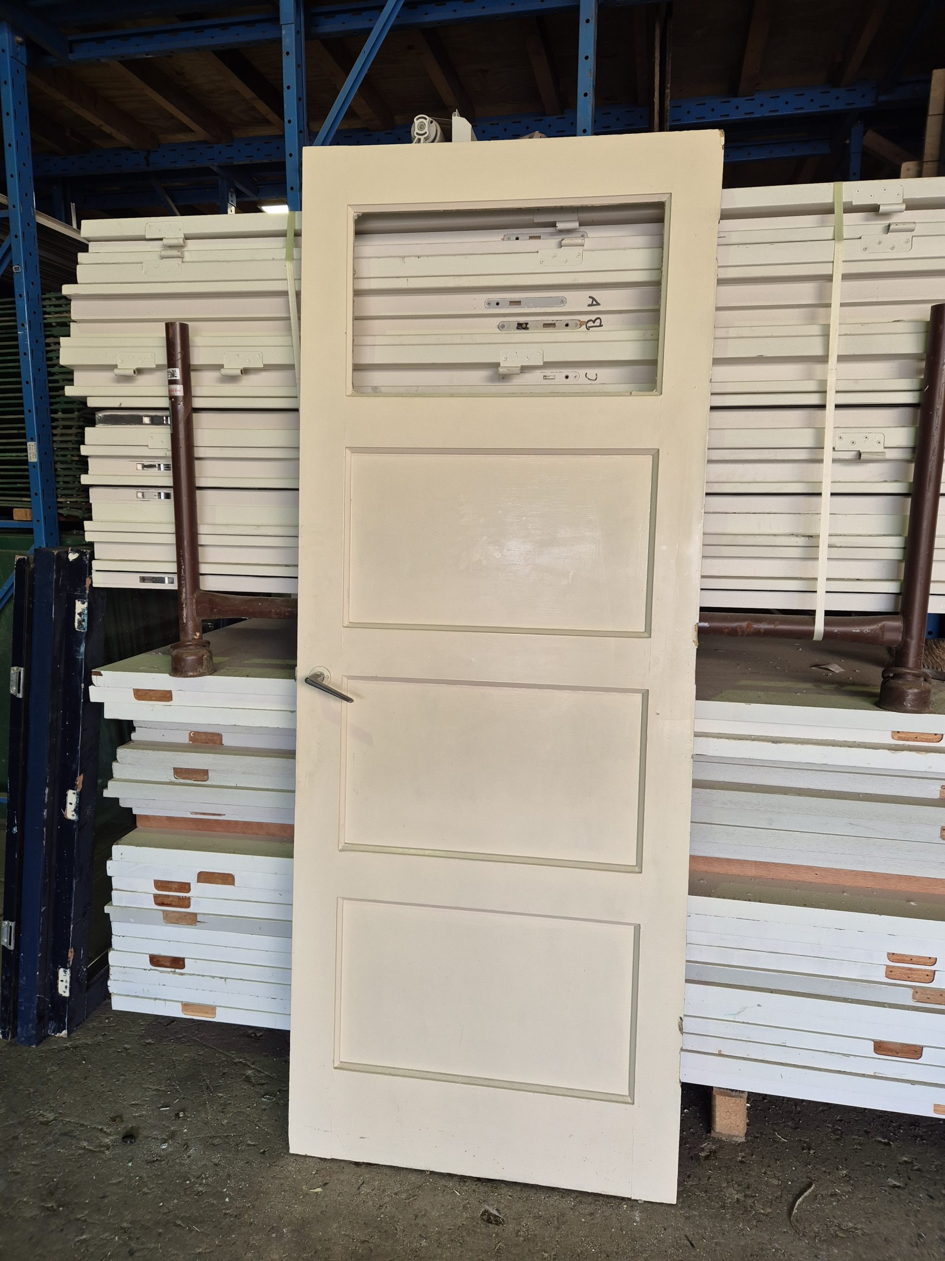 Authentieke paneeldeur met 4 vakken. Helaas is het glas eruit. Deze deur heeft nog wel een deurklink.