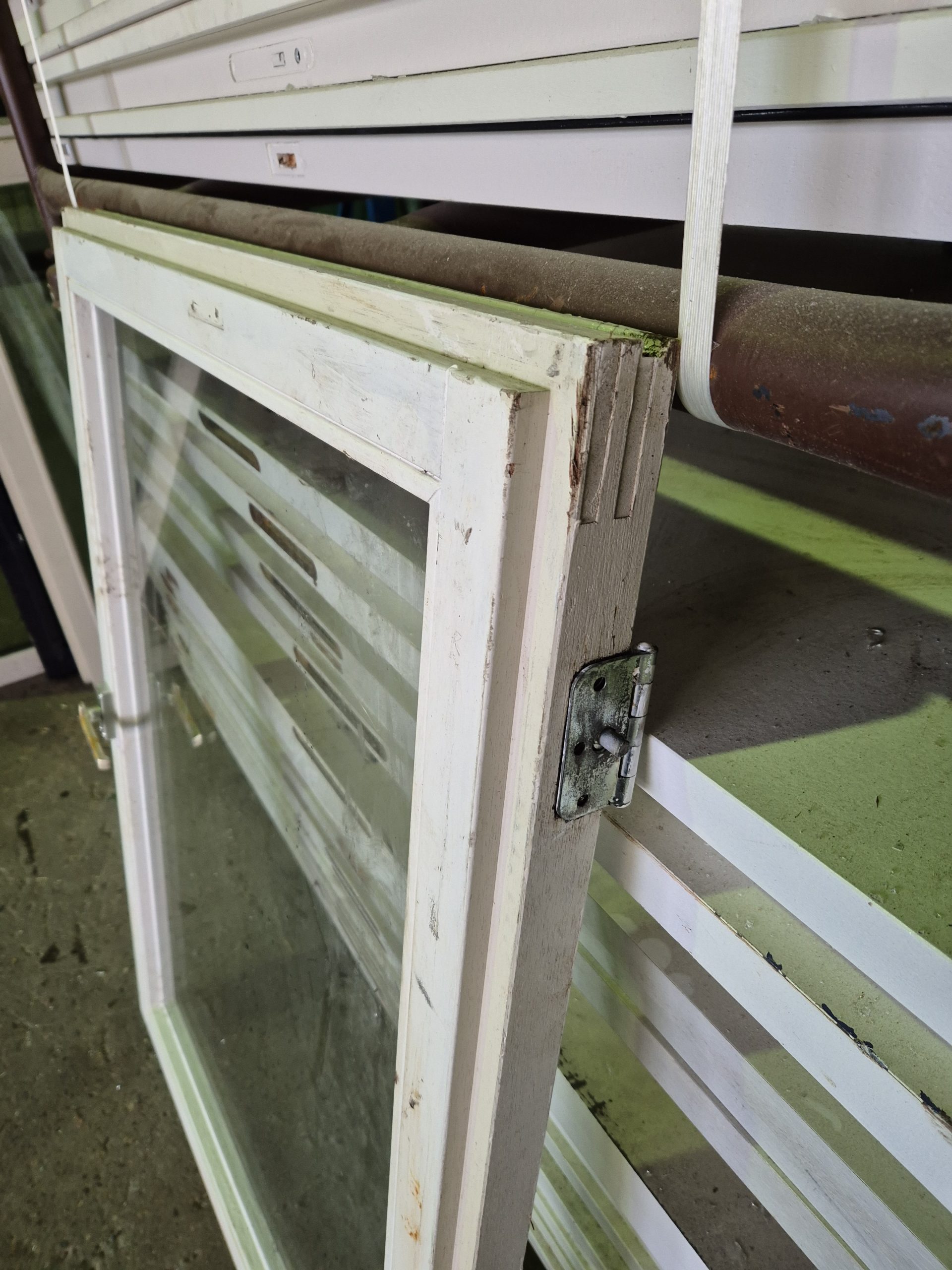 Rechthoekig binnen raam met dubbel glas. Na een onderhoudsbeurt is hij weer prima te gebruiken!
