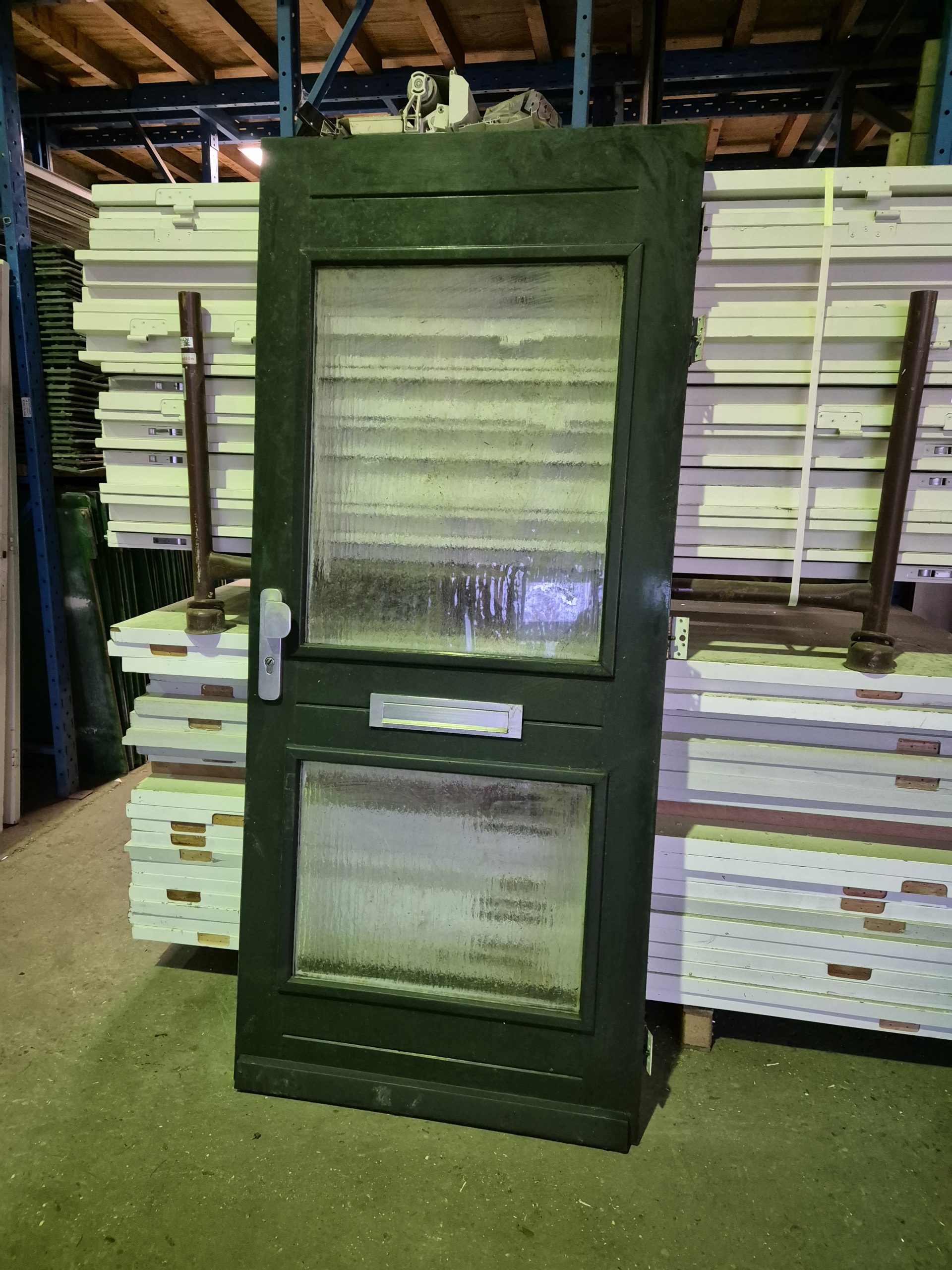 Nette voordeur met privacy glas. De deur bestaat uit twee glazen vakken en heeft een brievenbus.
